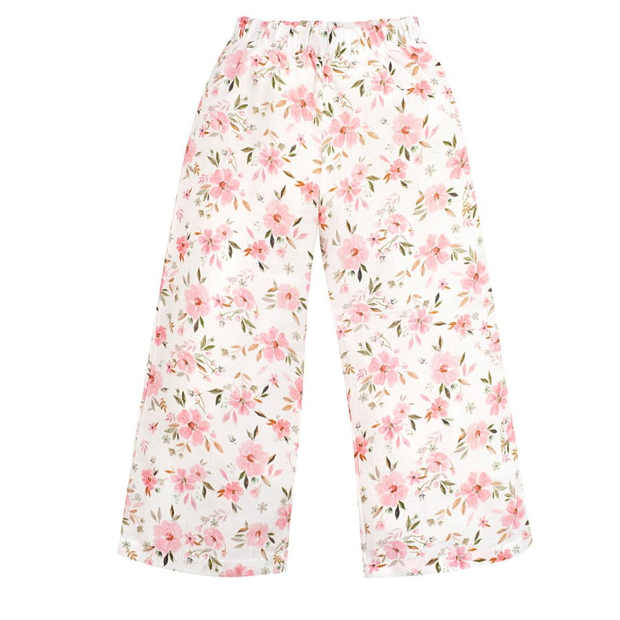 Szerokie spodnie dla dziewczynki z kolekcji muślinowej | Flowers - Pinokio