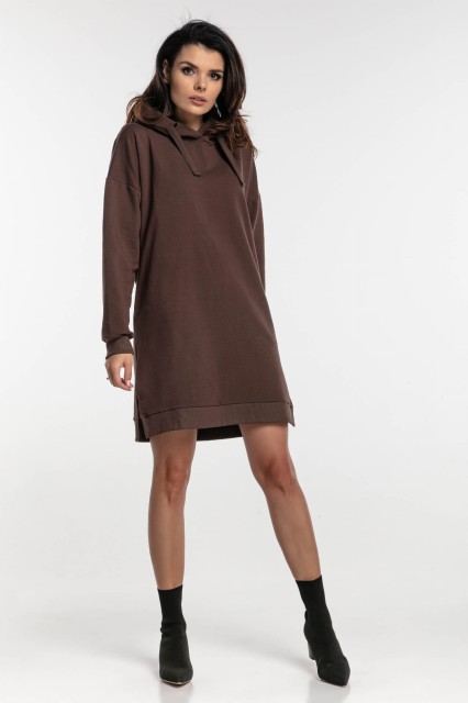 Sukienka dresowa z kapturem Ever/Czekolada - Dolce Sonno