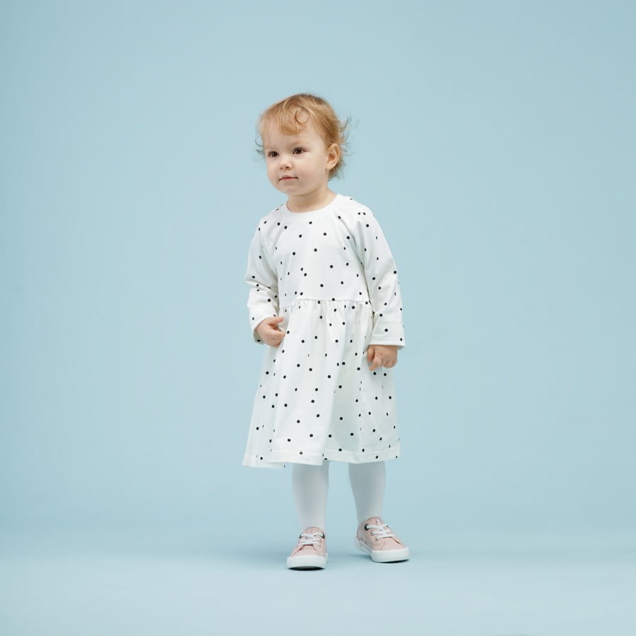 Sukienka dla dziewczynki bawełniana ecru w groszki - Tres Bien | Pinokio