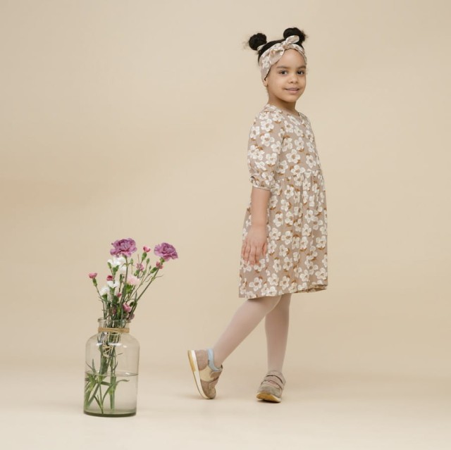 Letnia sukienka dla dziewczynki beżowa w kwiatki - Tres Bien | Pinokio