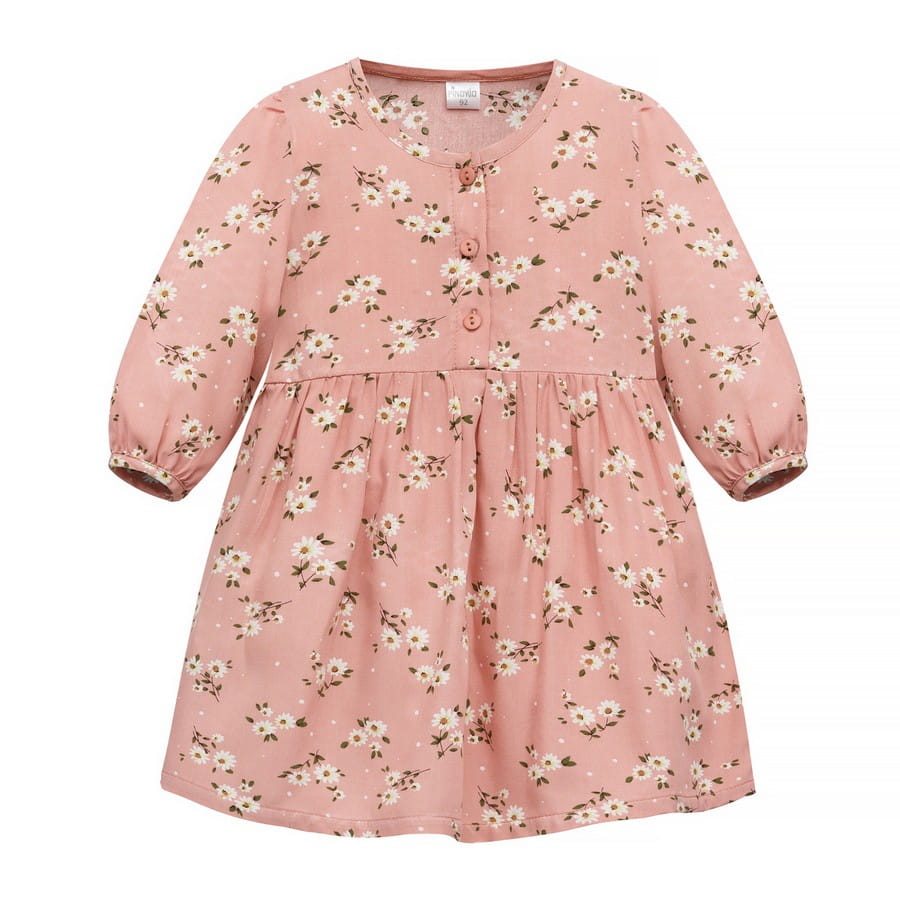 Sukienka dla dziewczynki z dzianiny wiskozowej różowa w kwiatki - Tres Bien Pinokio