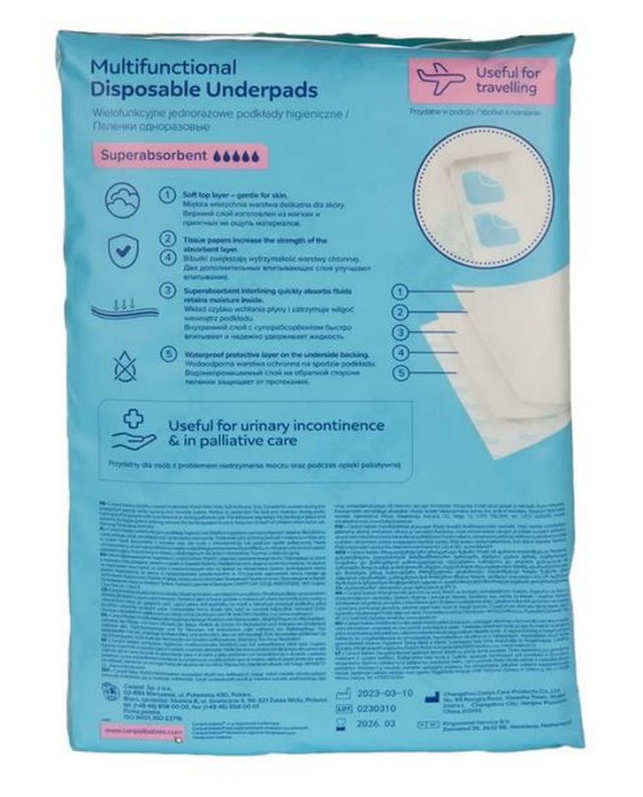 Podkłady higieniczne, jednorazowe z wkładem o bardzo dużej chłonności. Podkłady są niezastąpione w codziennej pielęgnacji Maluszka zarówno w domu , jak i w podróży. Świetnie sprawdzają się podczas nauki korzystania z nocnika, chroniąc pościel i materac przed zabrudzeniem. Ze względu na swój duży rozmiar mają zastosowanie podczas połogu.