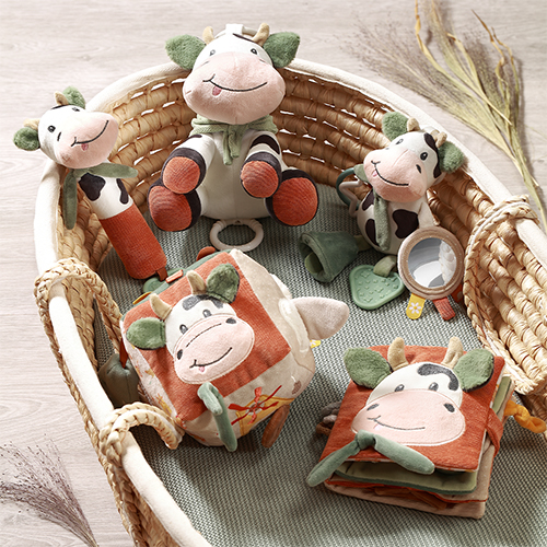 Zawieszka Cow Bingo to miękka, pluszowa zawieszka sensoryczna stworzona z myślą o niemowlętach od pierwszych miesięcy życia, która wspiera codzienną zabawę i naturalny rozwój dziecka.