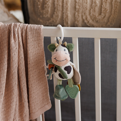 Zawieszka Cow Bingo – pluszowa zawieszka sensoryczna do wózka